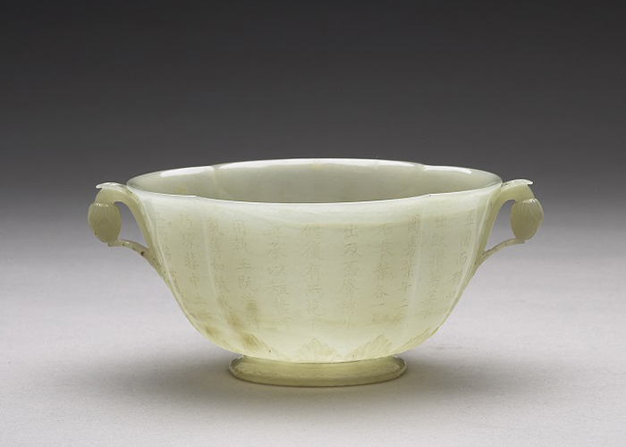 中亞,是伊斯蘭玉器的原鄉之一。由於自古與中國相鄰,彼此技術與風格交流密切,當地玉器製作的兩個高峰——六至十世紀于闐國以及十四至十五世紀帖木兒帝國,也是中亞文化高度發展並與東亞的中國頻繁往來的時期。不只如此,中國文獻如五代《高居誨行程記》載有:「其國之法,官未采玉,禁人輒至河濱者。」宋代王延德《使高昌記》,也記述高昌人「善冶金銀銅鐵為器皿及攻玉」,顯示了中亞重視玉雕並頗有成就;在與清代政權的拉鋸之間,乾隆五年起,中亞玉器數次作為戰敗的輸誠品,是較早進入紫禁城的一批。中亞玉器造型多受金屬器與瓷器影響,外表光滑、不重雕紋,但乾隆皇帝卻不只一次地為他們賦詩題字,其文化與政治意義俱豐。