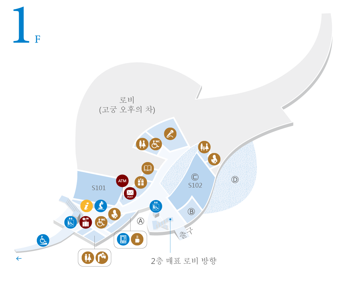 각종 참관 문의, 간단한 응급처치 키트, 아이스 팩, 휠체어, 유모차 및 물품 보관함 코인 대여 등 서비스 제공.